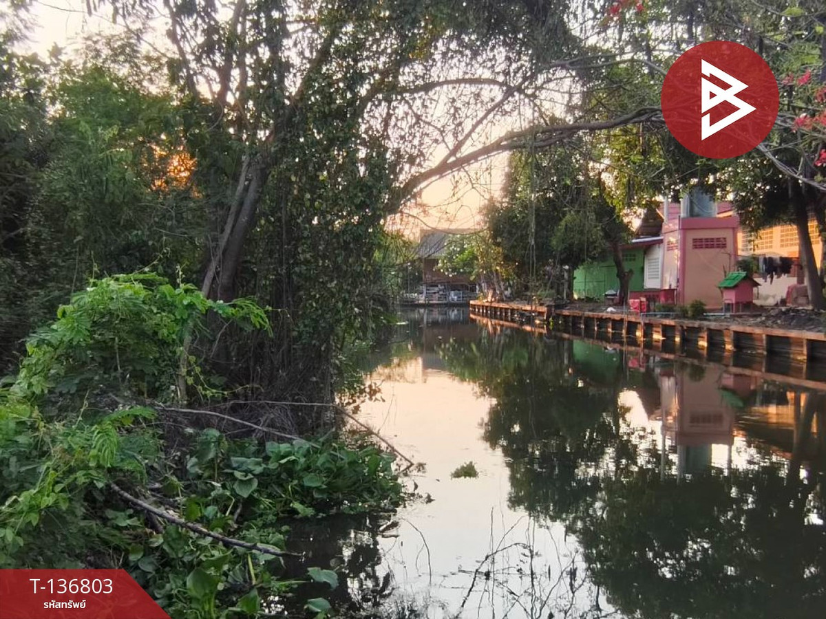 ที่ดินเปล่ายังไม่ได้ถม ด้านหน้าติดถนน ด้านหลังติดคลอง
