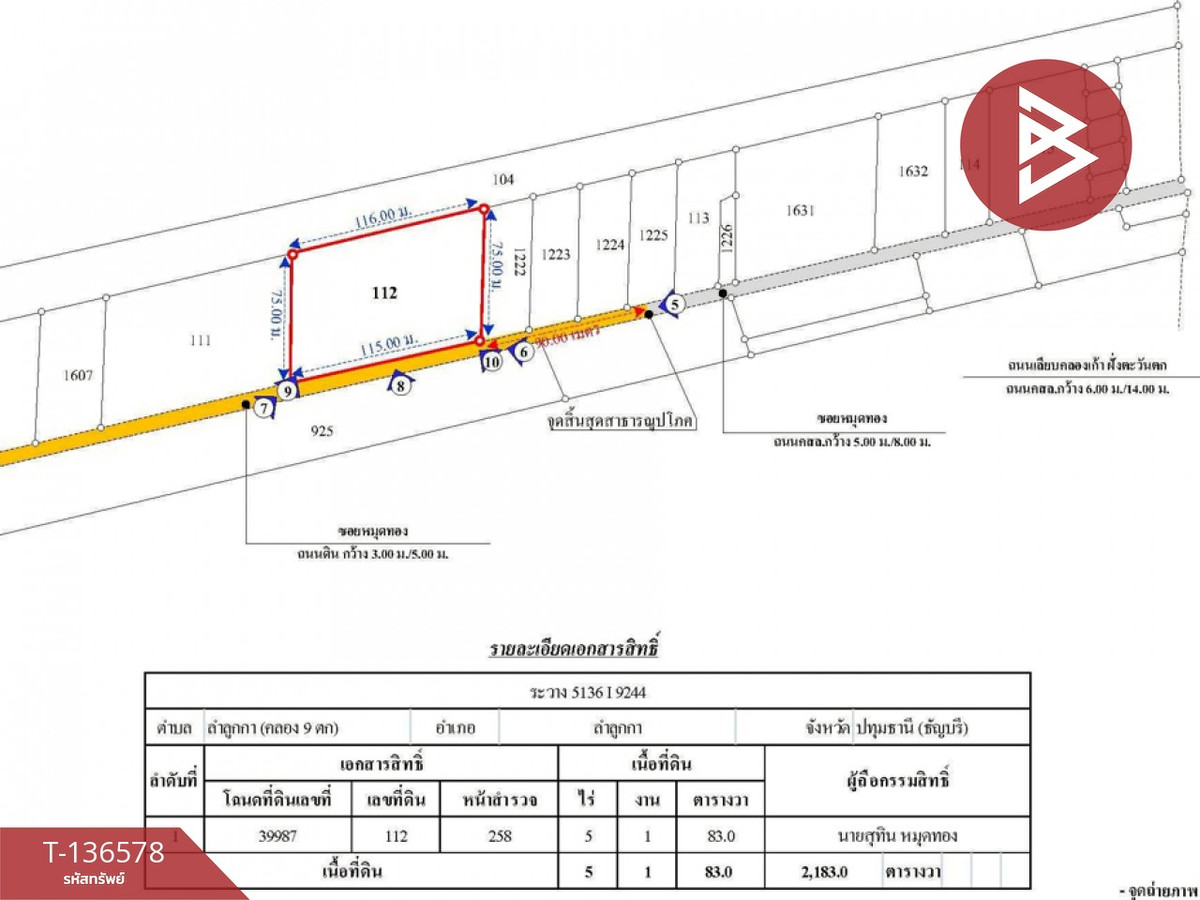 พื้นที่ : 5 ไร่ 1 งาน 83 ตร.ว.