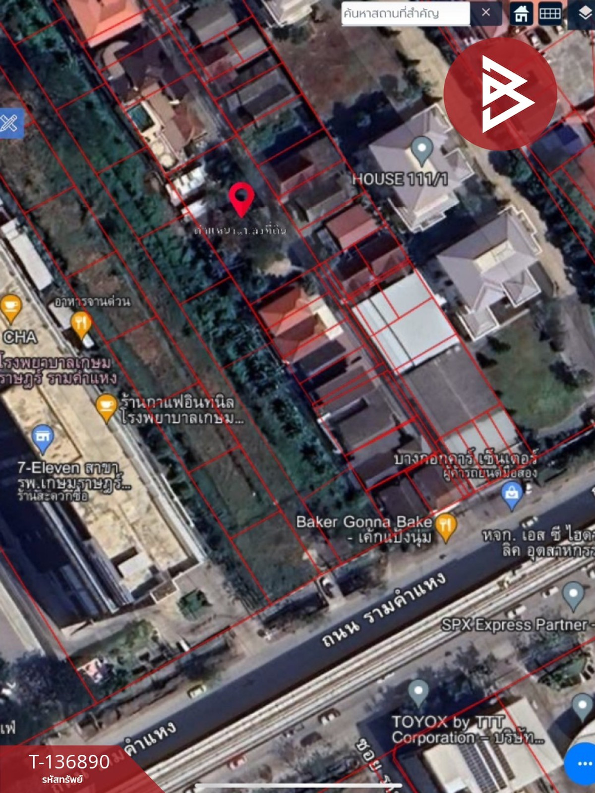 ซอยรามคำแหง 133 เข้าซอยประมาณ 70 เมตร หน้ากว้างประมาณ 36 เมตร ลึก 20 เมตร