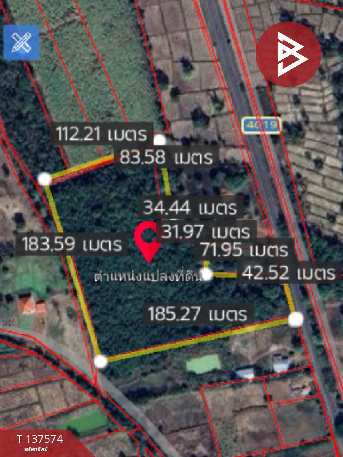 กว้าง : 40.00 เมตร ลึก : 185.00 เมตร