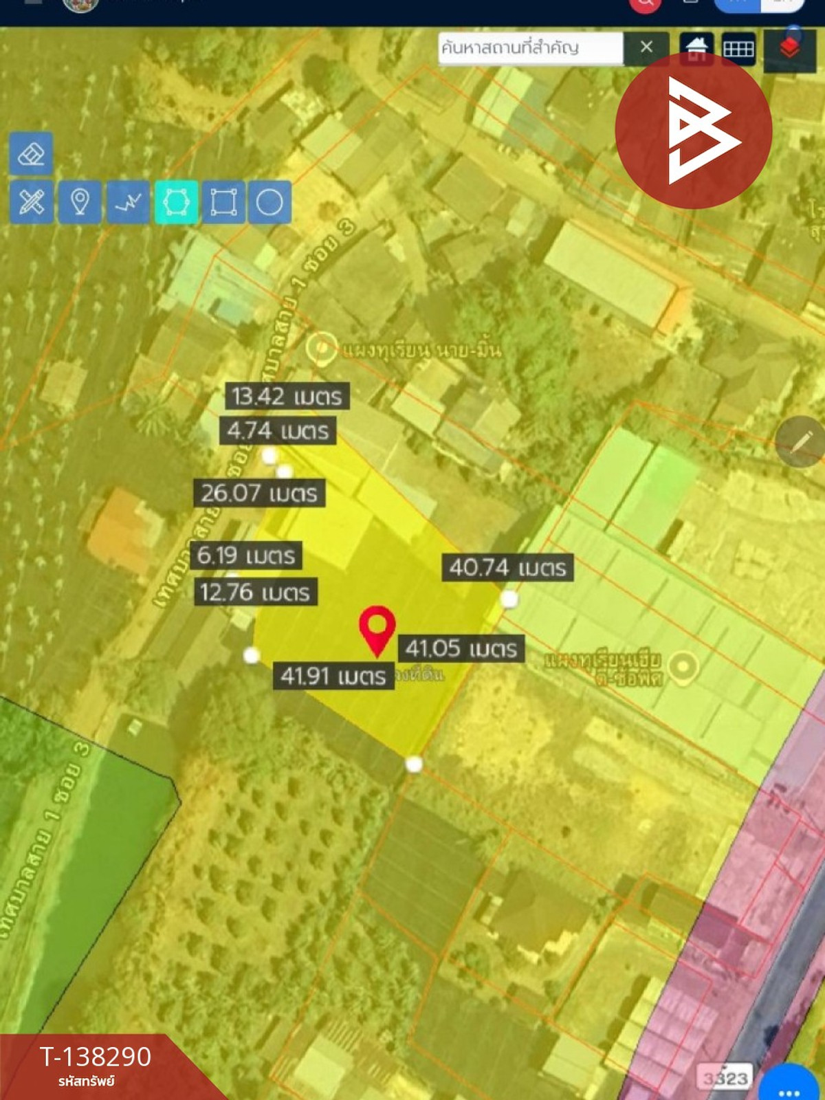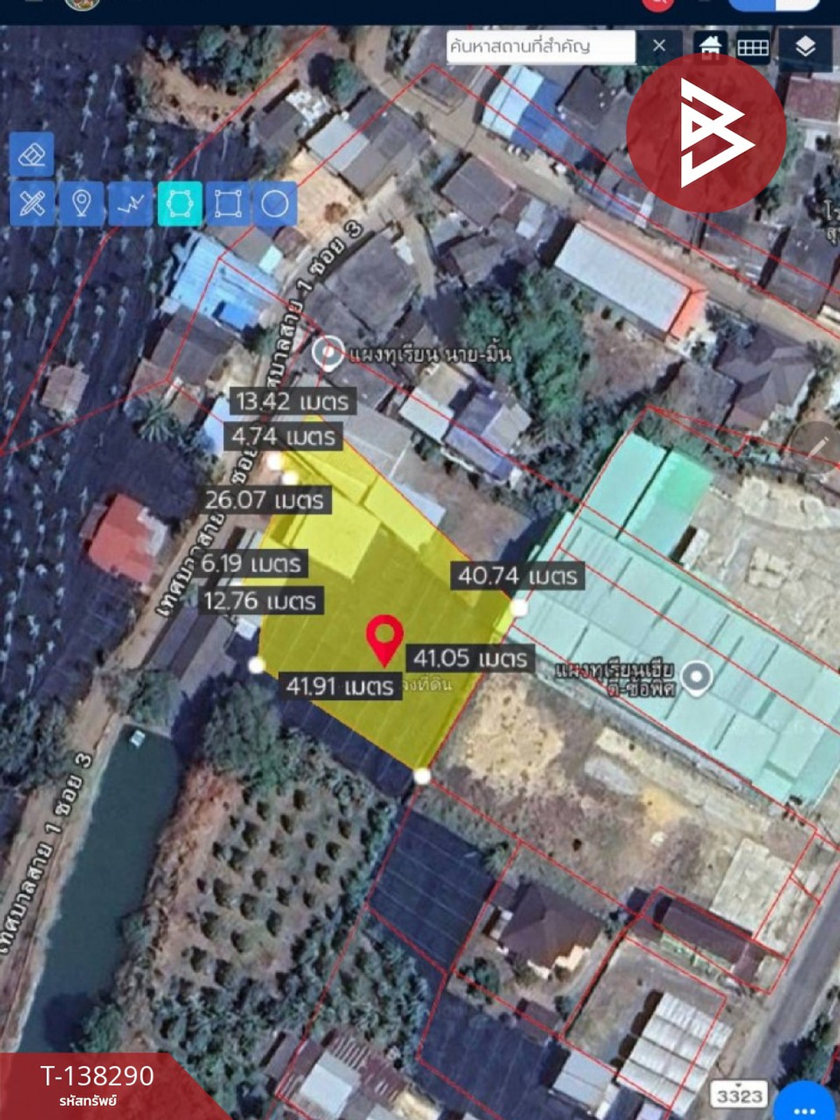 Area: 1 rai 2 ngan 17.0 square wah